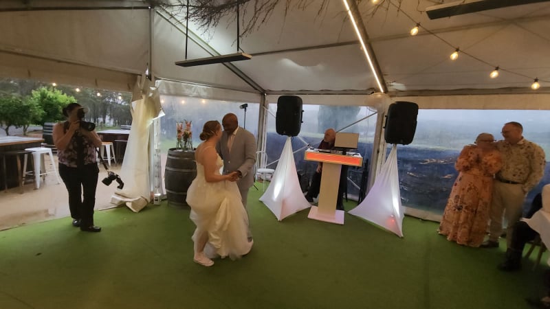 What a wedding and celebration between Joe and Ellie on 7th March 2026. A small and intimate gathering with friends and family from around the world, there was no other place than here at Cupitt's Winery. The weather held out right until the end of the ceremony and everyone made it safely back in the reception area. We provided DJ, uplighting and MC services for this lovely wedding. The dance floor was constantly packed, shirts were soaked from dancing inside and outside in the rain. All the vendors made it onto the dancefloor and helped with celebrating the love story of Joe and Ellie amongst family and friends. Congratulations to Joe and Ellie and thanks for having us.